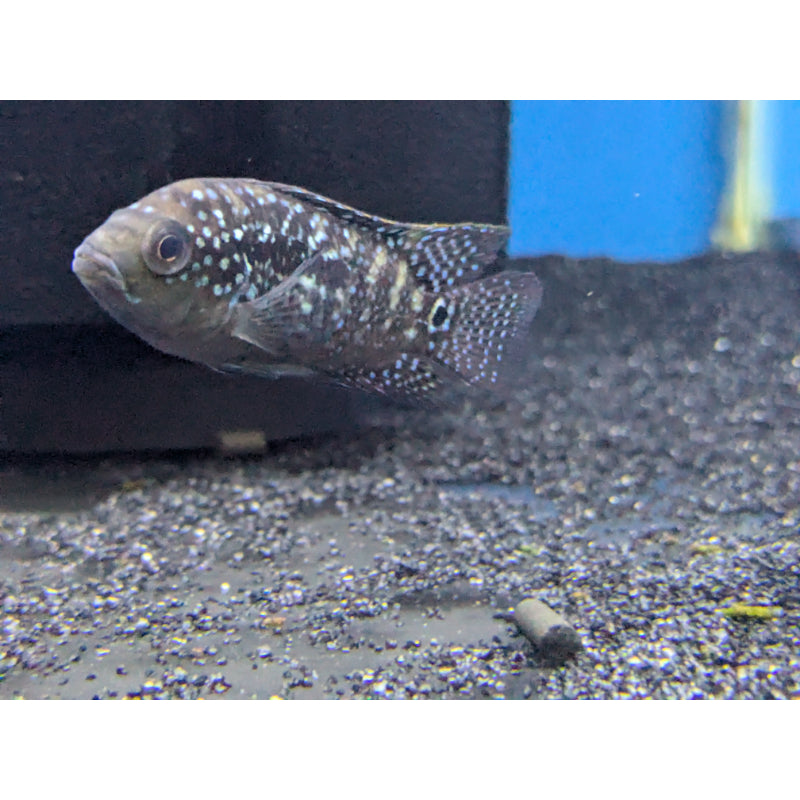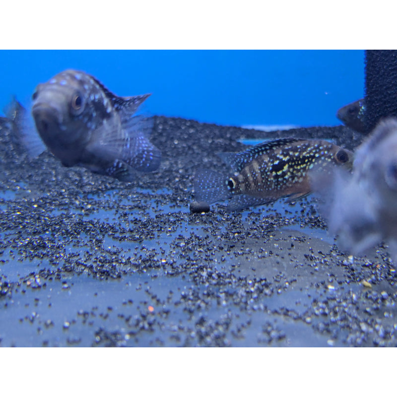 The Jack Dempsey Cichlid is a striking and powerful Central American species named for its bold personality and aggressive nature. Known for its shimmering iridescent blue, green, and purple scales over a dark body, this fish commands attention in any aquarium. Ideal for experienced aquarists, Jack Dempseys thrive in spacious tanks with carefully chosen tank mates.